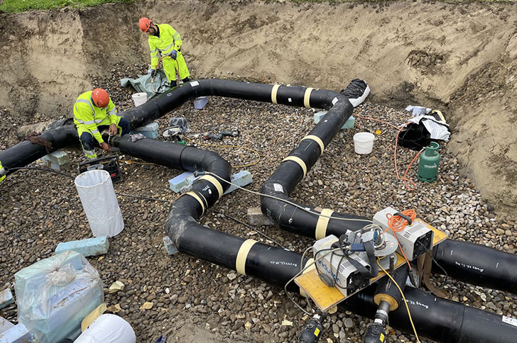 The restricted space on site was not an obstacle for us. The pipes could be easily unwound from the drum and aligned in the trench.