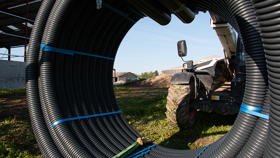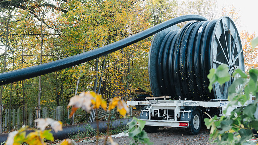 The FLEXWELL-FHK pipes were laid in strict accordance with the schedule. The use of a drum truck, which was in operation during the day, enabled the pipes to be pulled in precisely and quickly.