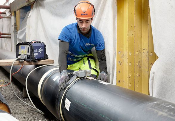 Beim Schweissverfahren werden das Mantelrohr und die Muffe örtlich erwärmt und verflüssigt. In der Schmelzzone verbindet sich das Material unlösbar miteinander. Eine hochbelastbare, dichte Schweißnaht entsteht. Die INDUCON Schweissmuffe ist die zuverlässige Lösung, welche sich durch außergewöhnliche Festigkeit und Betriebssicherheit auszeichnet. Sie ist deshalb auch geeignet bei schwierigen Bodenverhältnissen sowie Grund- und drückendem Wasser.