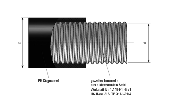 SECON-X® wyposażony jest w giętką, falistą rurę wewnętrzną ze stacji szlachetnej, nr materiału 1.4404. Geometria spiralnie pofalowanej rury wewnętrznej tworzy wraz z podłużnym płaszczem ochronnym z PE okalający rurę przewodową kanał, który w razie uszkodzenia zapobiega niedopuszczalnemu wyciekowi medium, a tym samym skażeniu gruntu. Ponadto kanał może stanowić przestrzeń do kontroli ciśnienia lub monitorowania nieszczelności.
